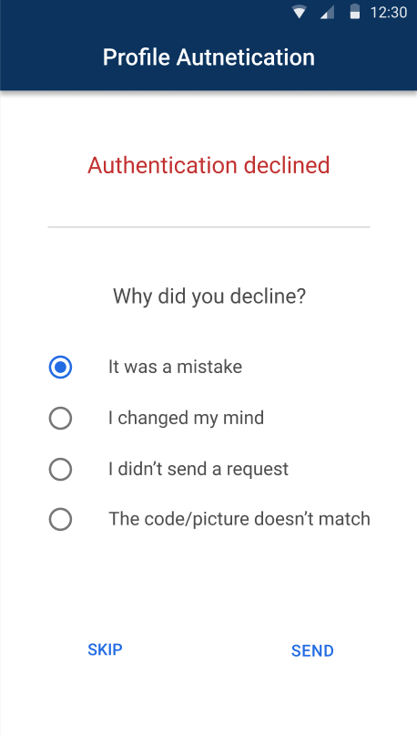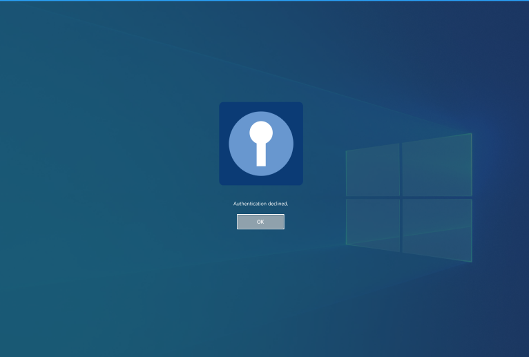 10. To decline authentication, click Cancel on the desktop lock screen or tap Decline on your other device where the push was received. Then, the following notification is displayed on your desktop:
