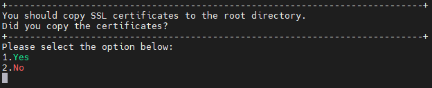 - You should have already copied your SSL certificates into the script folder. If not, press Ctrl+C to exit the script.