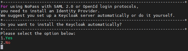 - If you chose the "Employee" path at the start. you will be asked if you want to spin up Keycloak automatically or if you have already installed Keycloak manually.