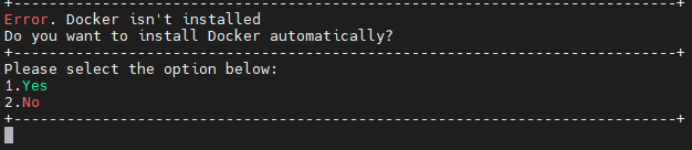 - If Docker is not installed, you will be asked if you would like to install it automatically.