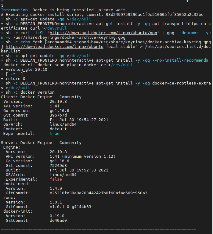 - To confirm a successful installation, you should see that all the Docker container images have a status of healthy. You can check this at any time by running the command $ sudo docker ps -a.
