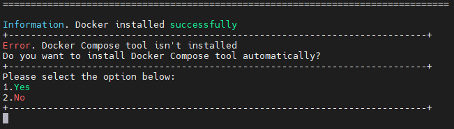 - If the docker-compose tool is not installed, you will be asked if you would like to install it automatically.