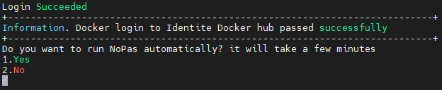 - Once successfully logged in to Docker Hub, you will be asked if you want to run NoPass automatically. If not, you can run at any time by running the command $ sudo docker-compose up -d.