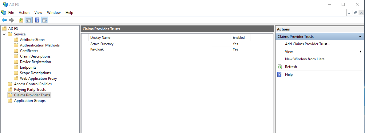 - In the AD FS Management console, on the left pane, select the Claims Provider Trusts folder.