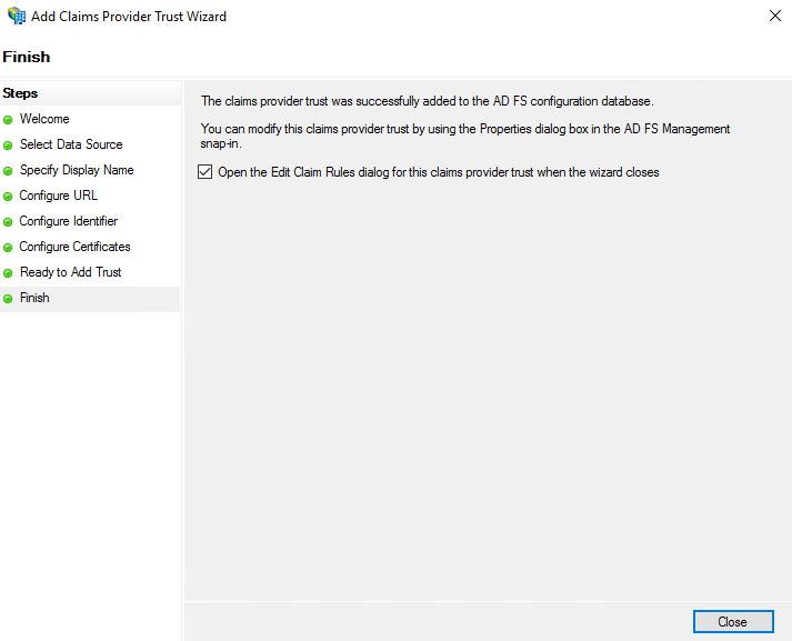 - In Finish, select Open the Edit Claim Rules dialog…, and select Close.