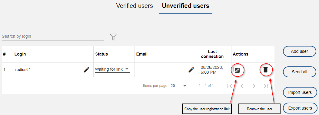 The user registers by the link and the administrator can see it on the verified user page in the Admin console.