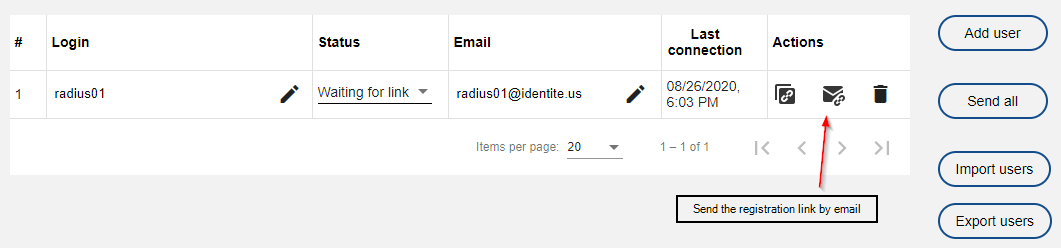 - Send the unique registration link to the user. You can send it by email but you have to enter the email address of the user.