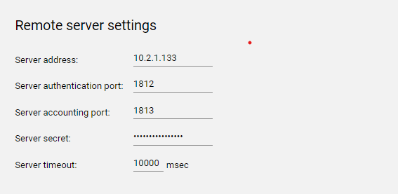 - Set the Server timeout for connection timeout to the RADIUS server.