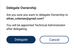 3. Select the Administrator from the drop-down list of logins or enter the login of the Administrator you want to delegate Ownership to.