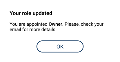 ii. After the Owner role is delegated, the following notification is displayed at the bottom of the page.