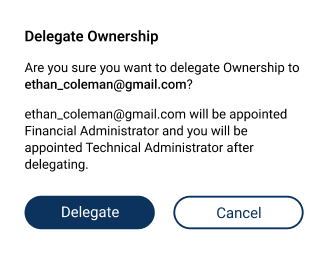 - To delegate both the Owner and the Financial Administrator roles, perform the following steps: